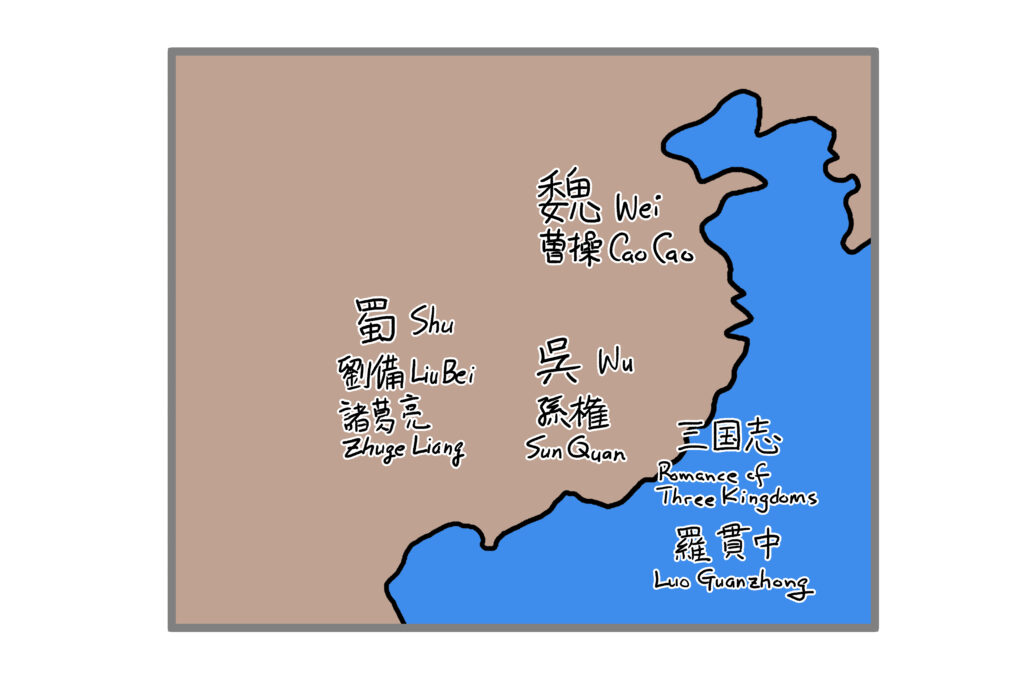 Jidaigekis are Japanese period dramas. Of course, each country has its own period dramas. One of the well-known period dramas is Romance of the Three Kingdoms, written mainly by Luo Guanzhong in the 14th century, which is based on the historical events in the second-third centuries in China. China in those periods was divided into many territories. Each territory was ruled by local warlord and his clans. Among these territories, three were rising with desire to be a champion to unify China; Wei kingdom led by Cao Cao, Wu kingdom led by Sun Quan, and Shu kingdom led by Liu Bei. Although Wei was the strongest in terms of military resources, it could not overwhelm Wu and Shu combined. So, the formation of alliance between two out of three through negotiations was the central issue. In one episode, Wei and Shu formed an alliance to attack Wu. But after the war, Shu severed itself from Wei and allied with Wu because Wei became too strong and risky for Shu.